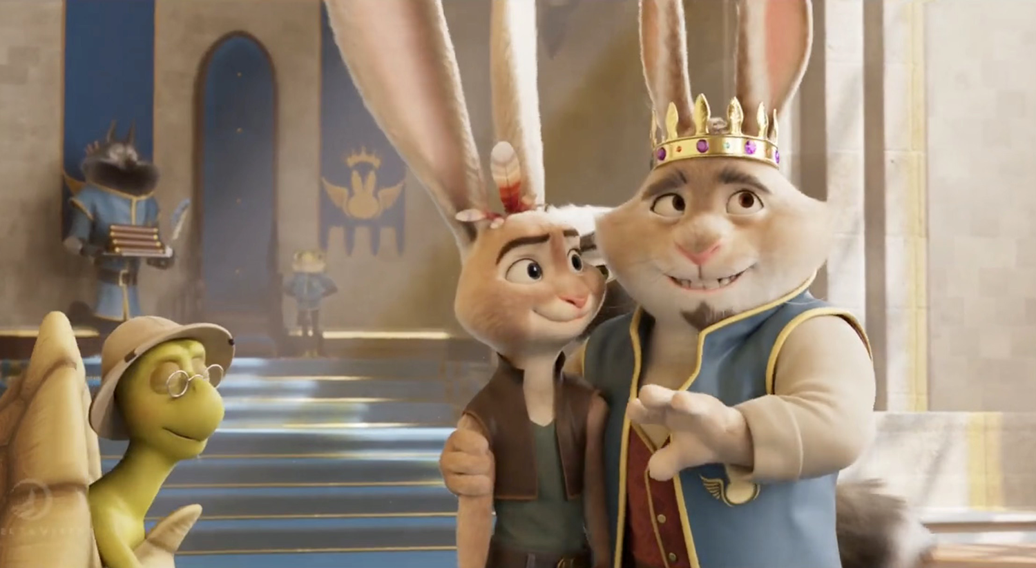 Otra maravilla del diseño es la hermana de Polloliebre. Al principio parece inequívocamente un pollo, y son precisamente los pequeños detalles (dedos más alargados, una cola picuda como la de las aves) los que refuerzan esa ilusión con sutileza. Lo brillante del personaje es cómo su transformación física acompaña su arco emocional.